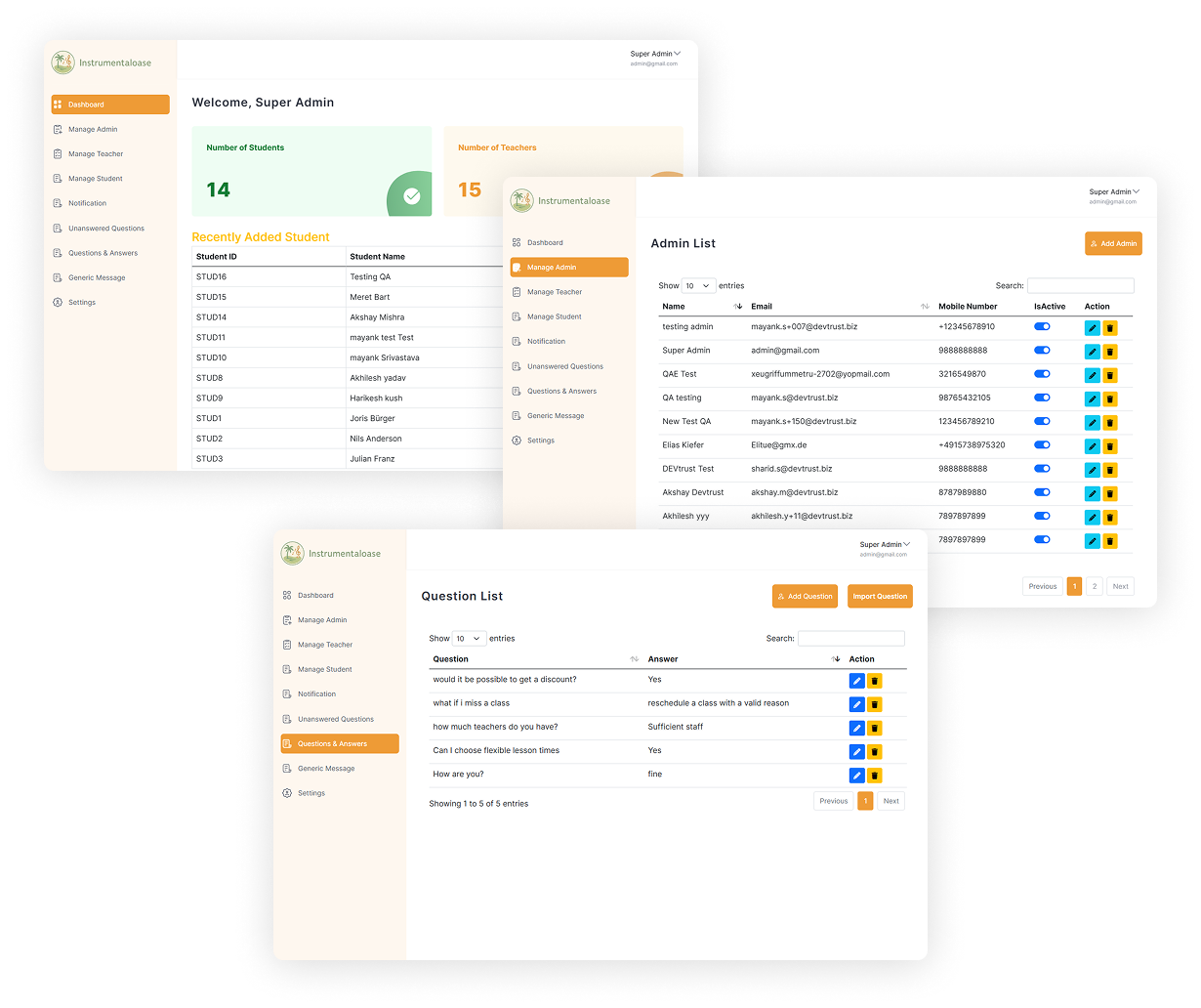 A platform where students can interact with an AI assistant to share their details, preferred musical instrument, and location. The system intelligently matches them with an available tutor based on their time slot and vicinity preferences. Once the tutor approves, the AI schedules a trial class with a confirmed date and time. After the trial session, the student can provide feedback, which is used to finalize and assign the most suitable teacher for the student.